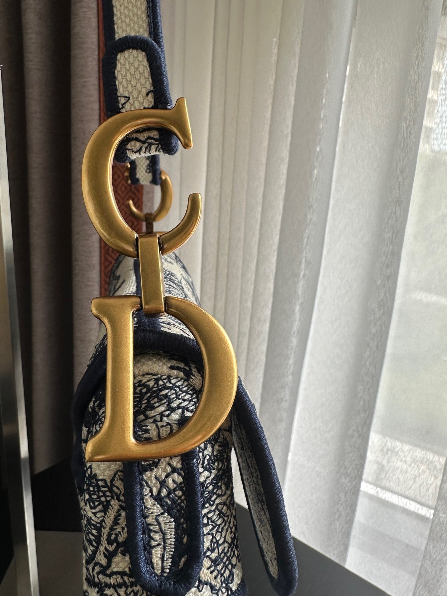 Bolsa Saddle Oblique Embroidery Blue